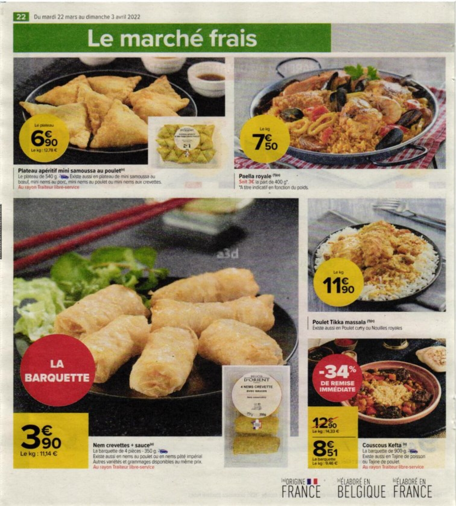 Période de validité de l'offre: 22.03.2022-03.04.2022